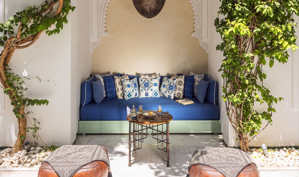 C'est à l'aéroport de Marrakech-Menara, l'un des plus beaux du monde selon le récent classement établi par le magazine américain CondéNast Traveller, que vous aurez votre premier contact avec le pays. Mais c'est au sein du Riad Idra, ce fastueux cocon à l'abri du tumulte de la ville ocre, que vous savourerez au mieux les charmes millénaires du Maroc. Votre chauffeur vous attendra dans le grand hall de verre et de béton ciselés et vous accompagnera jusqu'au minibus du Riad Idra qui vous mènera jusqu'à votre destination. Bien à l'abri derrière les remparts de la ville, au cœur de la Medina, vous attend le Riad Idra. A deux pas de l'un des palais du Roi du Maroc où vous apercevrez les gardes en livrée, dans le quartier de Dar El Bacha, le Riad Idra est un havre de sérénité et de fraîcheur où vous passerez les vacances les plus enchanteresses de votre vie.